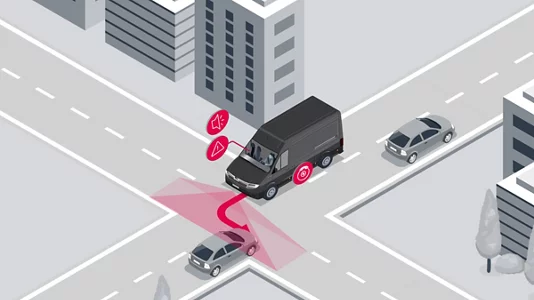 Комбі-фургон MAN TGE 1) оснащений великою кількістю інноваційних систем безпеки 2), які безпечно доставлять ваших пасажирів і водія до місця призначення.
